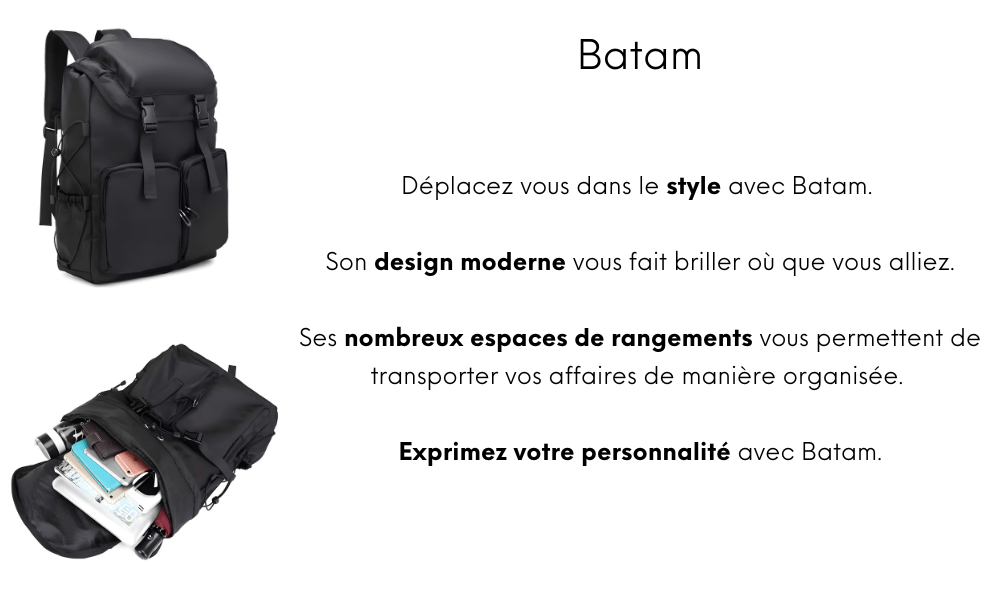 Stylé, solide et malin, le sac à dos Batam a été spécialement conçu pour être à la hauteur des exigences d’une personne active.