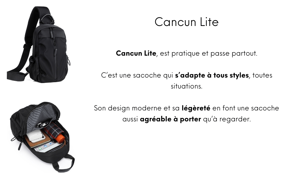 Stylée, solide et intelligente, la sacoche Cancun Lite a été spécialement conçue pour être à la hauteur des exigences d’une personne active.