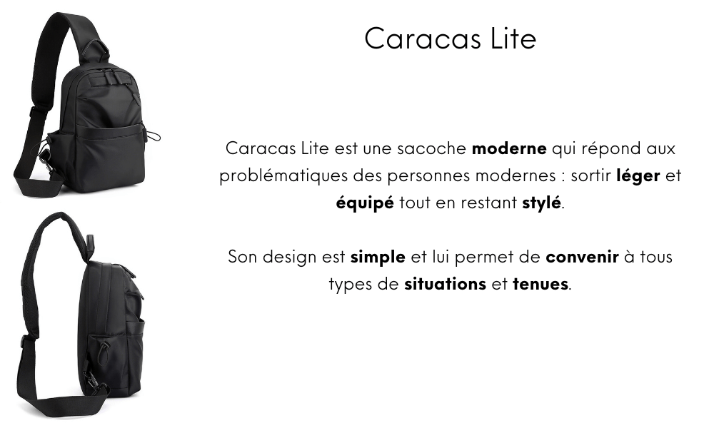 Stylée, solide et intelligente, la sacoche Caracas Lite a été spécialement conçue pour être à la hauteur des exigences d’une personne active.
