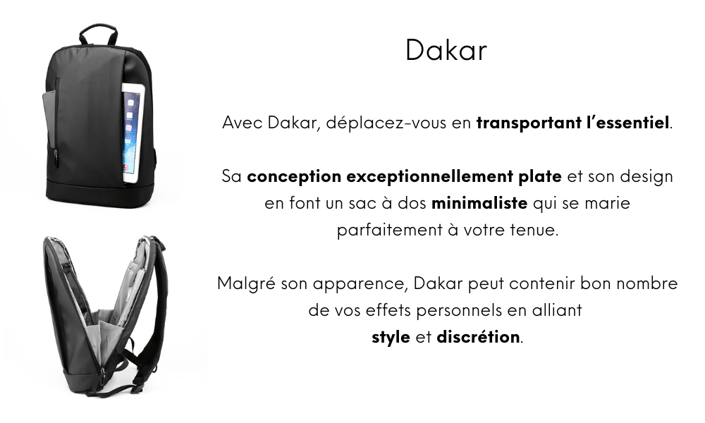 Stylé, solide et malin, le sac à dos Dakar a été spécialement conçu pour être à la hauteur des exigences d’une personne active.