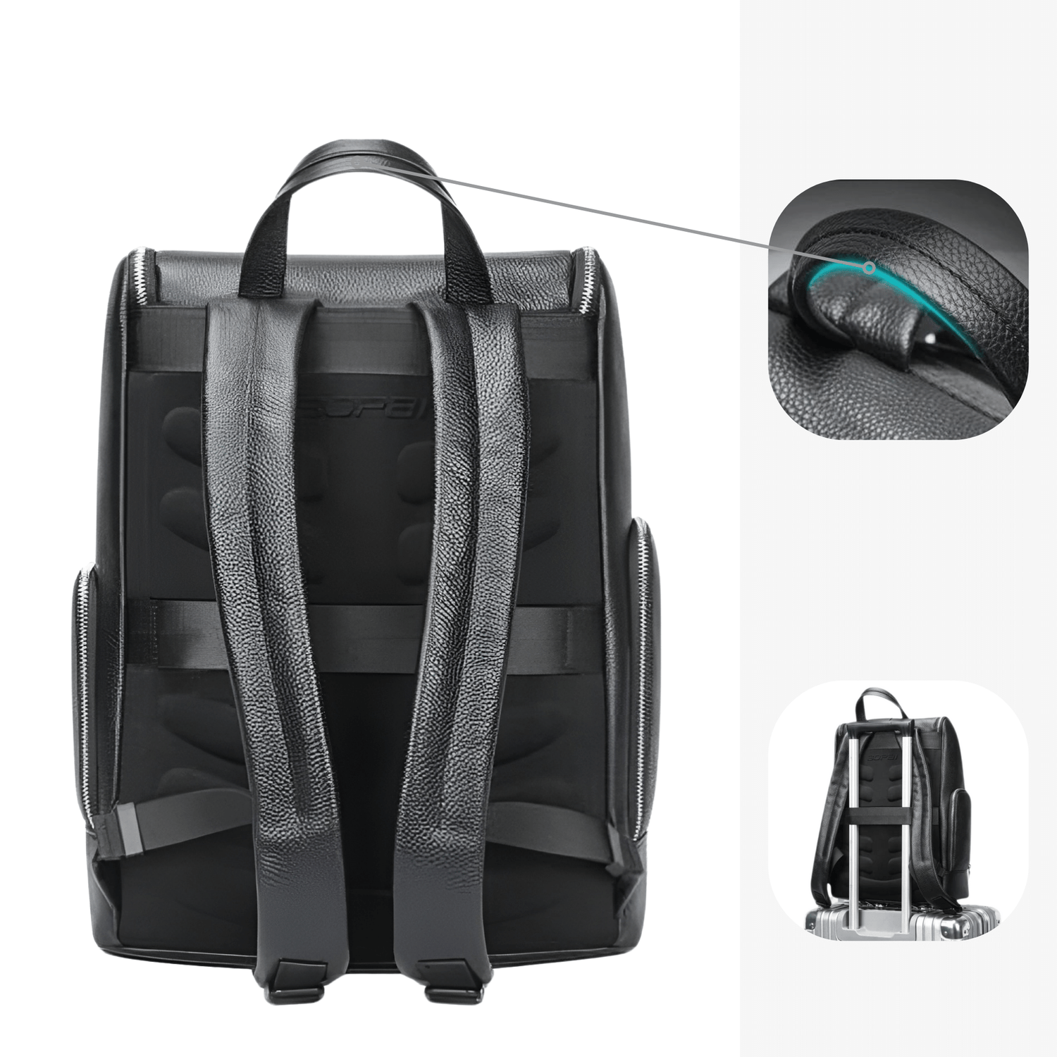 Le sac à dos Jever possède une poignée lisse et douce, agréable à votre paume. Il dispose également d’une sangle de fixation pour valise trolley.
