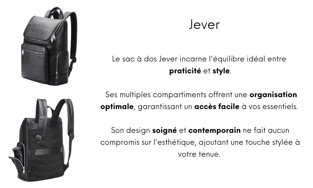 Stylé, solide et malin, le sac à dos Jever a été spécialement conçu pour être à la hauteur des exigences d’une personne active.