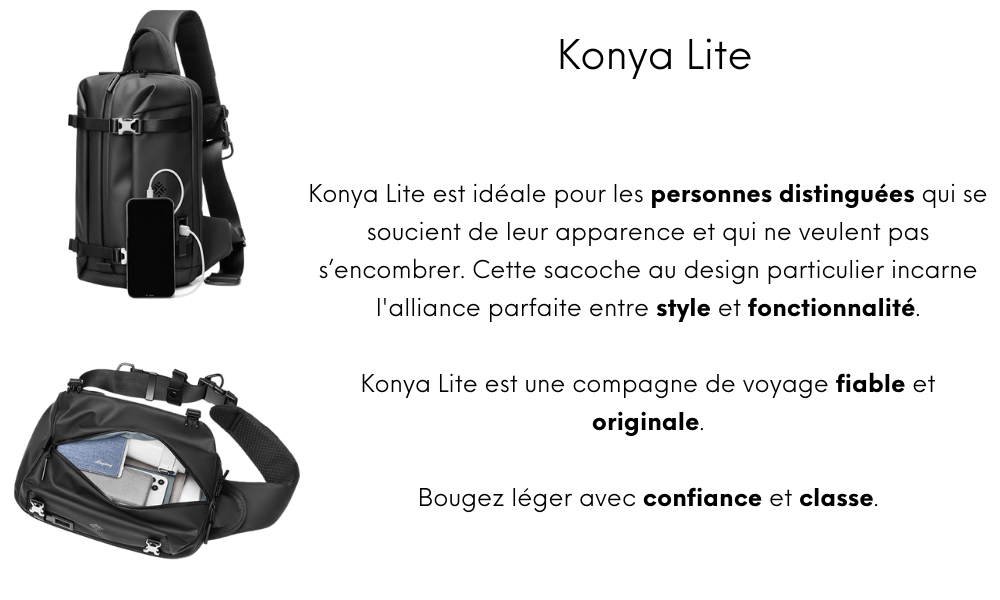 Stylée, solide et intelligente, la sacoche Konya Lite a été spécialement conçue pour être à la hauteur des exigences d’une personne active.