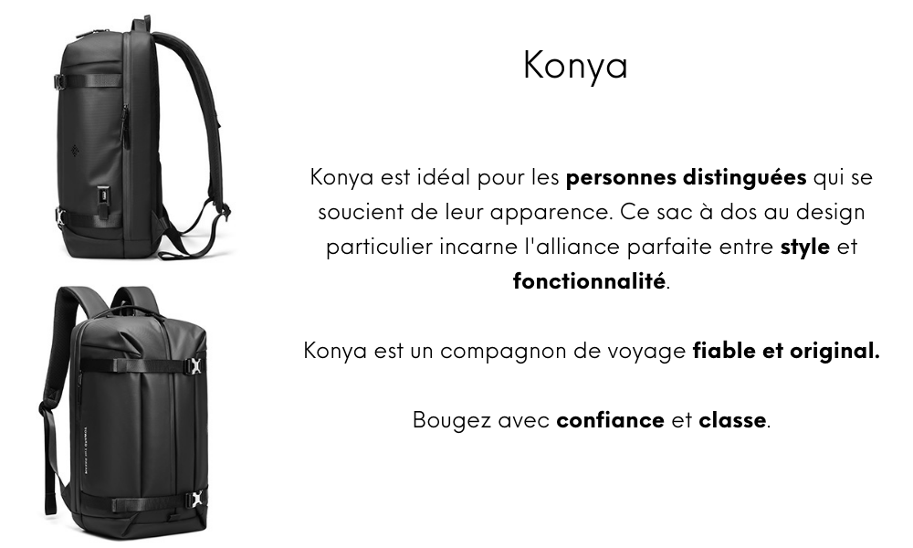 Stylé, solide et malin, le sac à dos Konya a été spécialement conçu pour être à la hauteur des exigences d’une personne active.