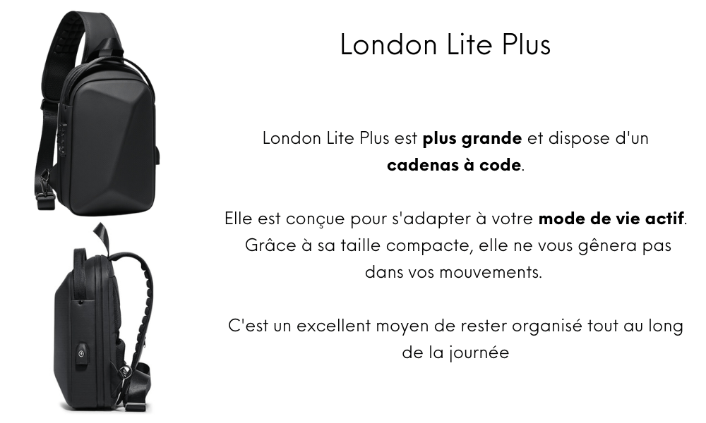 Nous avons équipé la sacoche London Lite Plus d'un compartiment à code antivol pour protéger vos effets personnels.