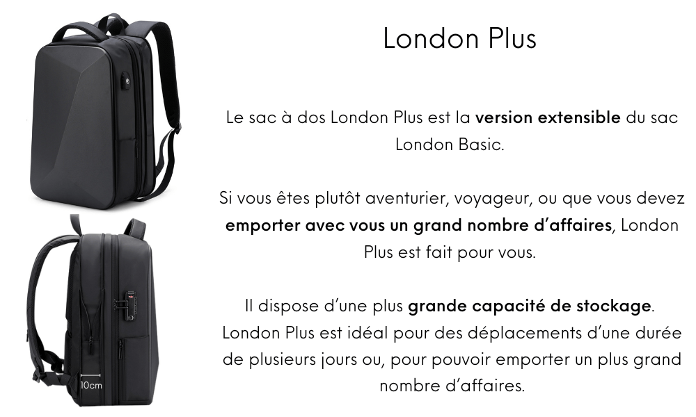 Nous avons équipé le sac à dos London d'un compartiment à code antivol pour protéger vos effets personnels.