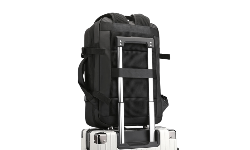 Il dispose également d’une sangle de fixation pour valise trolley.
