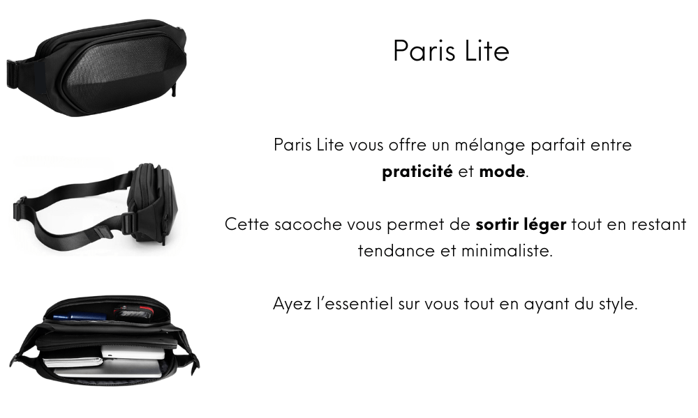 Stylée, solide et intelligente, la sacoche Paris Lite a été spécialement conçue pour être à la hauteur des exigences d’une personne active.