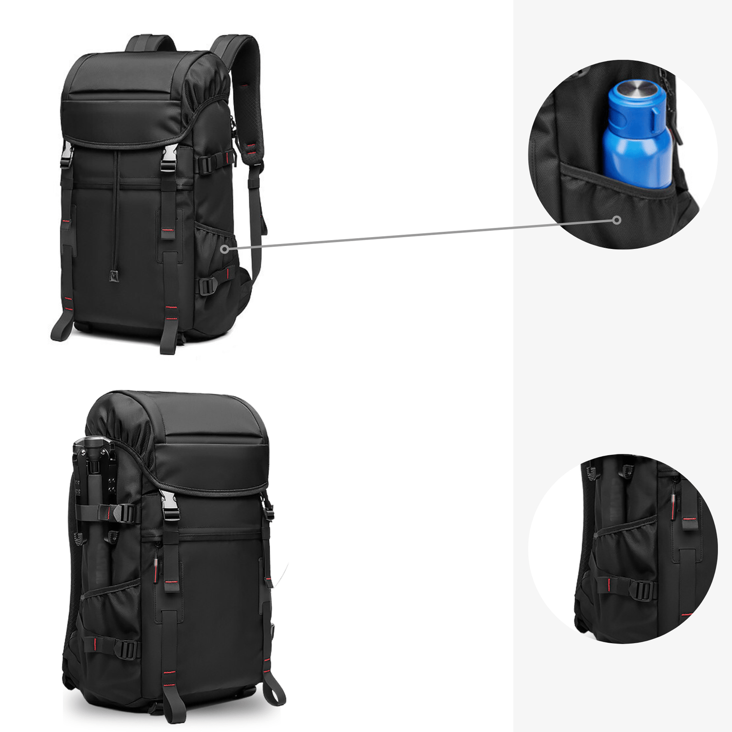Il dispose de sangles pour attacher votre trépied de manière horizontale comme verticale.