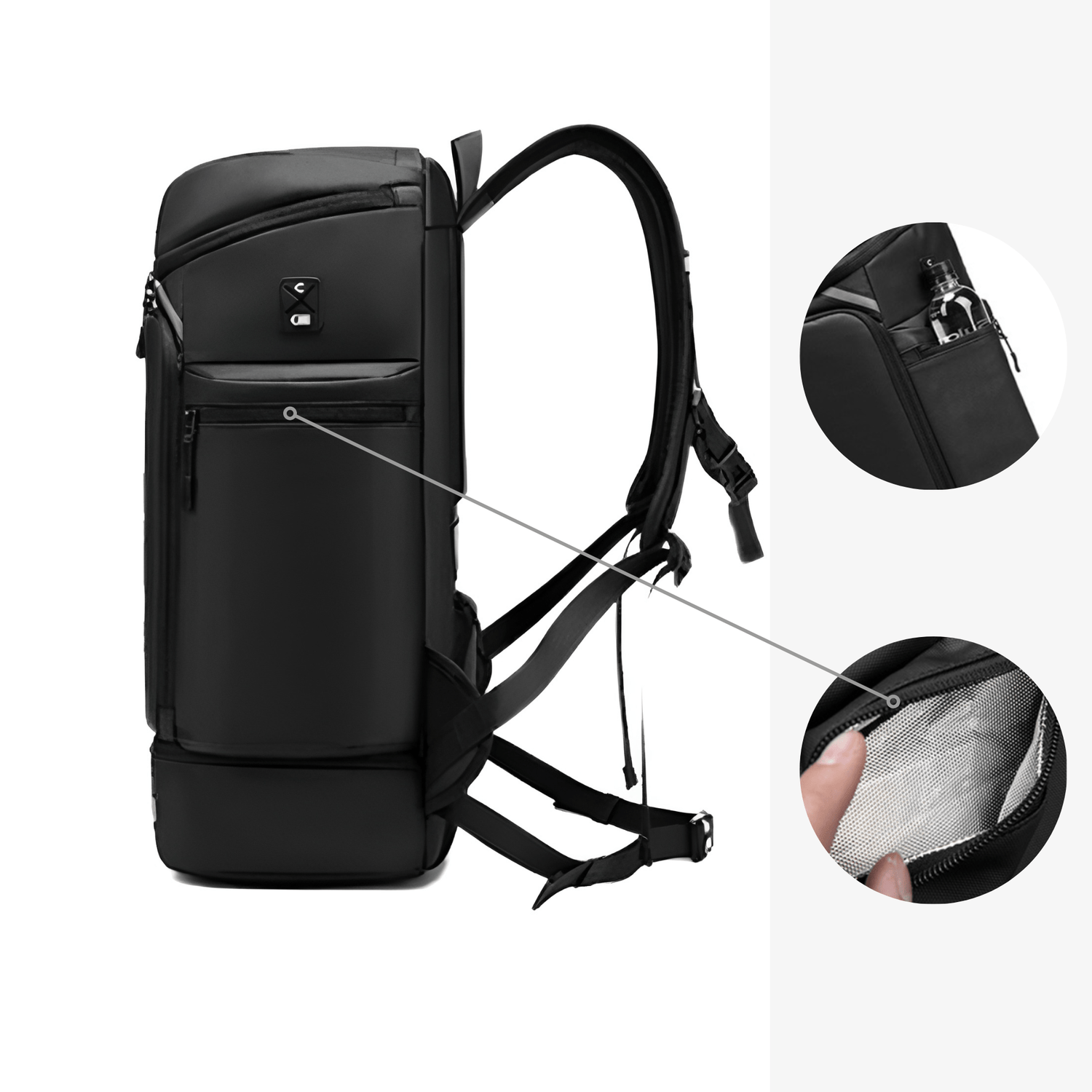 Nous avons équipé le sac à dos Seoul d'une poche latérale. De quoi vous permettre d’accéder facilement et rapidement à ce dont vous pourriez avoir besoin dans l’immédiat (gourdes, lampes torche, médicaments…etc)