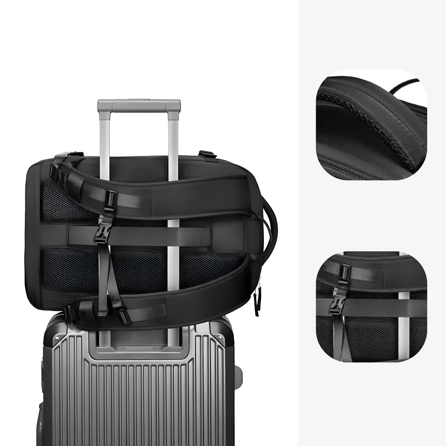 Sa poignée est rembourrée et agréable à votre paume. Il dispose également d’une sangle de fixation pour valise trolley.