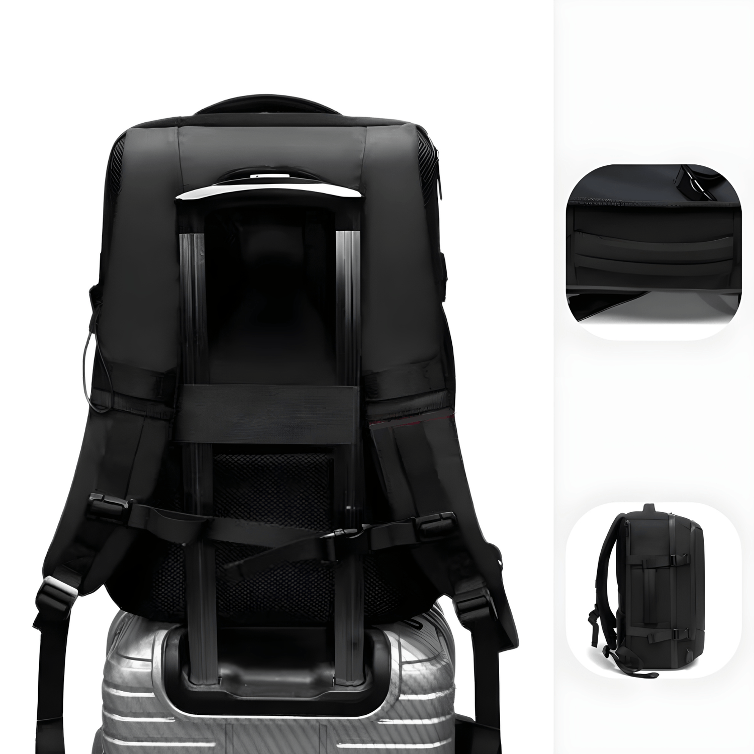 Il dispose également d’une sangle de fixation pour valise trolley.